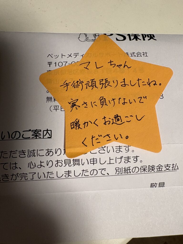 いつもこのような手書きのメッセージを付けてくれます。ホッコリします。