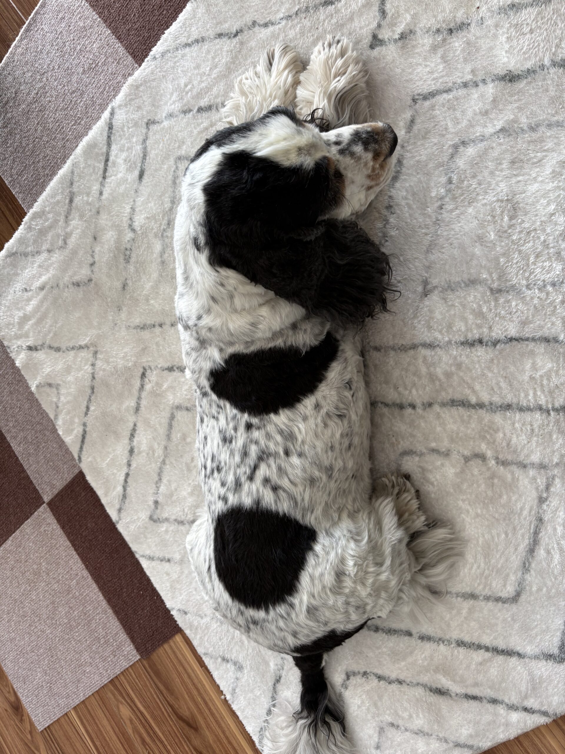 犬の肛門嚢アポクリン腺癌で治療中のイングリッシュコッカースパニエル「マレ」。