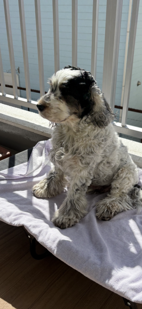 犬の肛門嚢アポクリン腺癌で治療中のイングリッシュコッカースパニエル「マレ」。